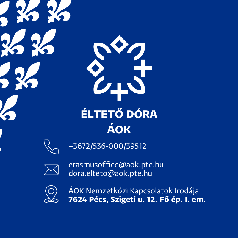 A Pécsi Tudományegyetem partner kapcsolatait az alábbi szűrési lehetőséggel a saját szervezeti egységére bontva megtekintheti itt: mobilitás kereső